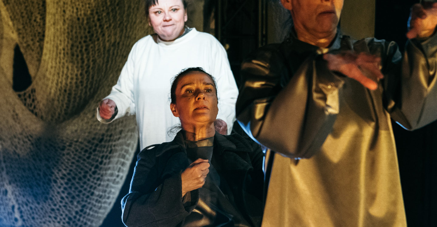 Kuva: Mitro Härkönen. Talvisota. Edessä Kati Outinen, keskellä Ella Pyhältö, takana Anna-Leena Sipilä.